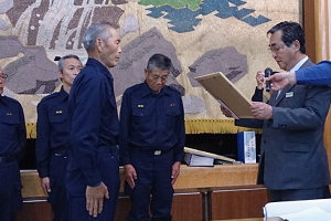 | 仁淀川町久喜自主消防感謝状授与(平成26年4月18日) この組織は、昭和35年から昭和55年3月12日まで旧吾川村消防団久喜分団として活躍され、その後は久喜地域の自主消防組織として10名で地域を見守り、今日まで無火災を続けてこられましたが、この度、平成26年3月12日をもって惜しまれながらの解散となりました。 長きに渡り、地域の防災及び減災にご尽力されたことに対し、高吾北消防本部といたしましても敬意を表し、心より感謝申しあげます。ありがとうございました。 ![]() ![]() |
