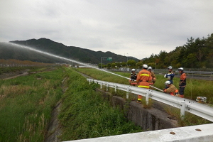 | 平成26年度越知町消防団演習開催(平成26年6月22日) 平成26年6月22日(日)、越知町消防団水防演習が雨天の中開催されました。 開会式に続き、積み土のう工法を実施しましたが、どの分団も慣れた手つきで器用に袋詰めや土のう積みを完成させていました。一斉放水では、活動している団員の中に手袋を着用していない方々も見受けられ、まだまだ安全管理に対しての徹底ができていないと改めて感じました。午後からは、毎年放水競技を実施していましたが、今回新しい取り組みとして防災教育を取り入れるなど、団訓練が競技ばかりではないことを改めて見つめ直す一日となりました。お疲れ様でした。 ![]() ![]() |