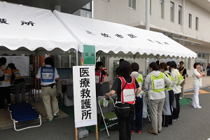 | (サテライト会場) 土佐市民病院での災害救護訓練 高吾北消防本部からも参加しました。 |