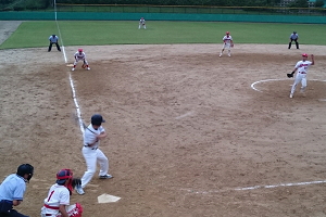 今年度で退職されるレジェンド大野楠清さん、悔いのない三振です。 |