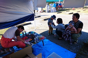 佐川警察署主催の「みんなでつくろう安心な街キャンペーン」が佐川町桜座において開催されました。今回は高吾北消防本部も協賛として救急フェアを同時に開催し、晴天の中親子連れなどたくさんの方に訪れていただきました。警察や消防車両の体験乗車、火起こし体験、スプレーペイントアート実演、FIGHTINGドックスのゲームコーナー、警察署員で作るアドベンチャラーズのライブなど、盛りだくさんの内容で大変賑わいました。 |