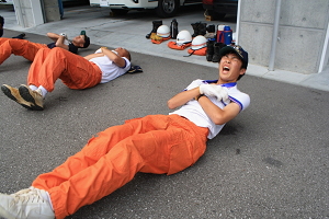 宮城県総合運動公園において同大会が開催され、「ほふく救出」に3名が出場してきました。7月に開催された四国地区指導会では、思わぬミスにより入賞を逃してしまいましたが、その悔しさをバネに選手たちは暑い中訓練に励み、54.5秒(基準タイム62秒)とタイムを切るとともに行動での減点もなく、見事に入賞を果たすことができました。おめでとうございます。また、選手はもとより、周りの職員たちも長い期間訓練の応援等ご苦労様でした。 |