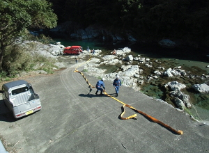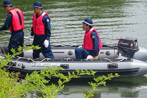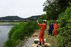 暑い夏を迎え、水のシーズンがやって来ました。これにつれ、全国で毎年不幸な事故も発生していますが、少しでも地域住民の皆様が楽しい夏を過ごせるようにと、佐川警察署と高吾北消防署では、シーズン突入前に水難救助合同訓練を実施し、お互いの救助技術、機械器具の点検、救急法など確認しあいました。 |