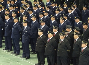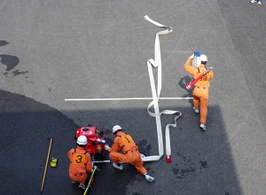 平成31年3月14日、署内警防技術訓練が開催されました。世代交代が急ピッチで進んでいく中、今年は若手の技術力向上を目的に、小型ポンプ操法を実施し、本署、分署あわせて6チームが訓練の成果を披露しました。また、大石組合長による特別点検や訓示では、参加した署員が一糸乱れぬ姿で、消防の基本である規律と節度を披露してくれました。 |