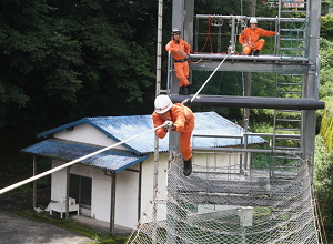 第48回消防救助技術四国地区指導会がいよいよ7月27日(土)と迫ってきました。選手たちは、日夜訓練に励み後は成果を発揮するのみとなっていますが、7月25日は大会会場である高知県消防学校に最後の調整にやってきました。選手は【ロープブリッジ救出】@番員大ア隊員・A番員吉村隊員・B大西隊員・C大原隊員【ロープブリッジ渡過】岡隊員です。さて、本番でみんなの笑顔が見えると良いのですが! |